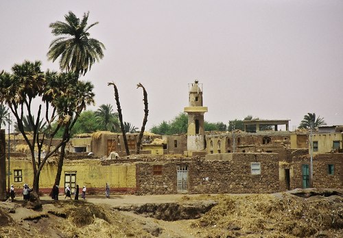 Typisches Dorf am Nil, vom Kreuzfahrtschiff aufgenommen.